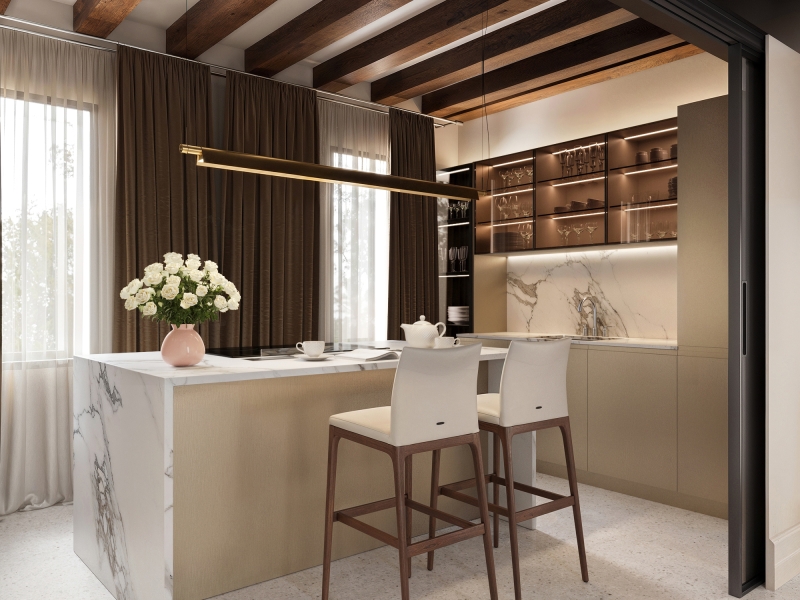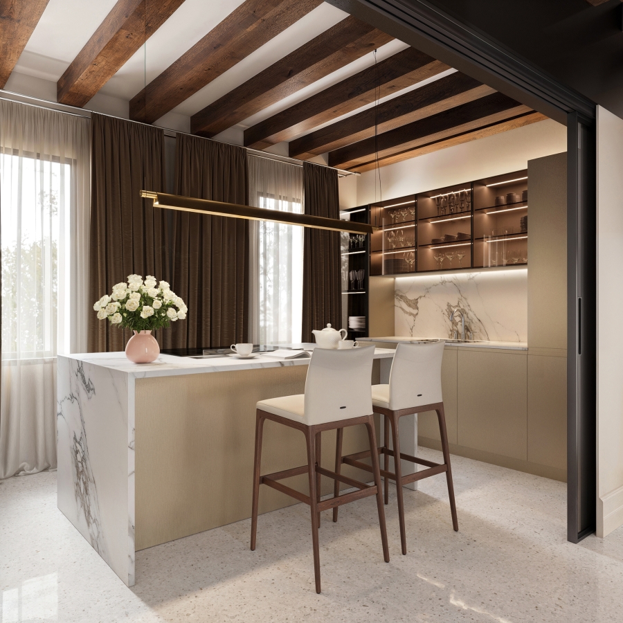 Ma anche arte, zona wellness, due giardini privati, dettagli costruttivi e architettonici frutto di scelte raffinatissime e ricercate che spaziano dal prezioso massello di wengè, scelto per parte della pavimentazione, alla travatura in legno con recuperato dell'originale del 1500.