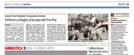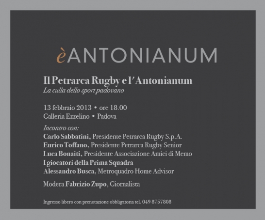 Continua a leggere >>La culla dello sport padovano: Il Petrarca Rugby e l'Antonianum. Incontro 13 febbraio 2013 - ore 18.00 - Galleria Ezzelino